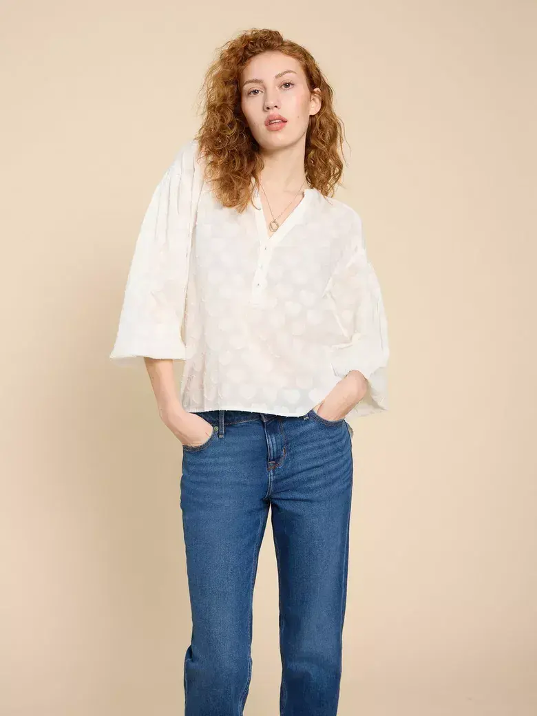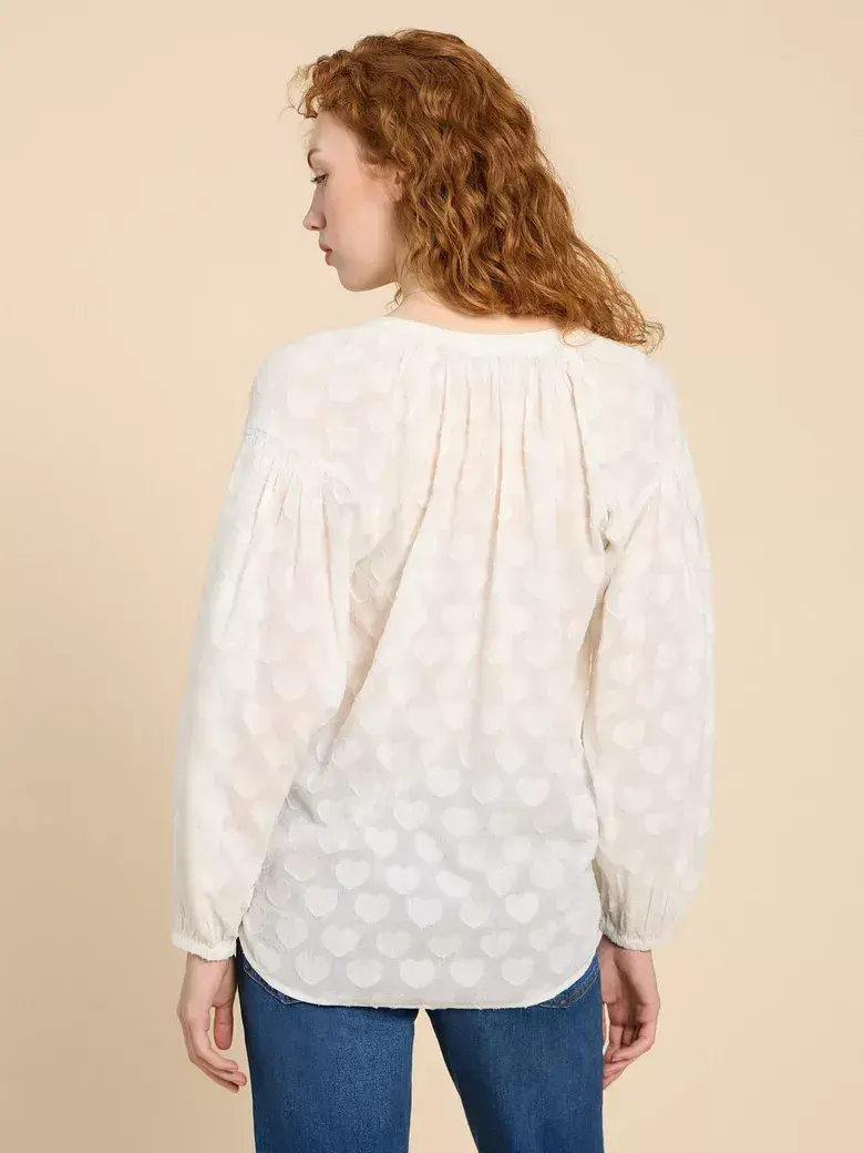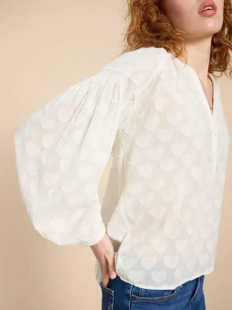 Thought you were a romantic? You should see Josie. She’s all about the little details, like a notch neck. Or a half button-down placket. And she’s adorned in an all-over heart jacquard. Because why just wear your heart on your sleeve when you could wear it everywhere else, too?