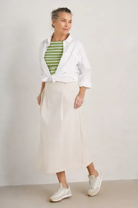 The Cornish Sailor T-Shirt is great way to add a dash of stripes to your wardrobe, with wide, evenly-spaced stripes inspired by Cornishware. Made from super soft organic cotton jersey, it has short sleeves and a classic boat neck. Perfect with just about everything, it's a summer must-have.